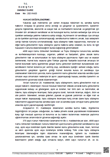Toplu Sözleşmeye Hukuka aykırı şekilde Konulan % 1 Teşkilatlanan Sendikalara TİS aidatının Ödenmesi Maddesinin Yürütmesini Durdurma Kararı.
